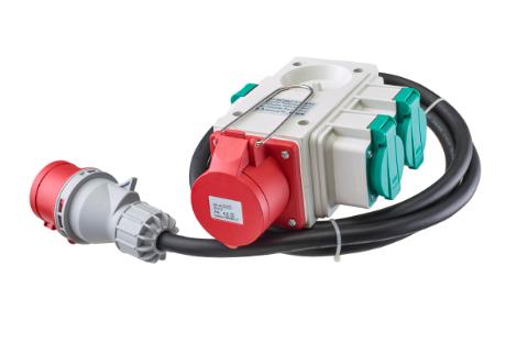Fordelerboks med afgang af 1 X CEE 16A 400V og n3 X DK 16A 230V udtag samt 2,2m tilslutningskabel mednCEE 400V stikpropn5Pn16An400V