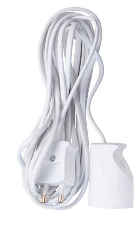 Colli: 5 stk.nForlængerledning hvidnUden jordnMed 5m ledningn2x0,75mm²n10An230VnMed pillesikring