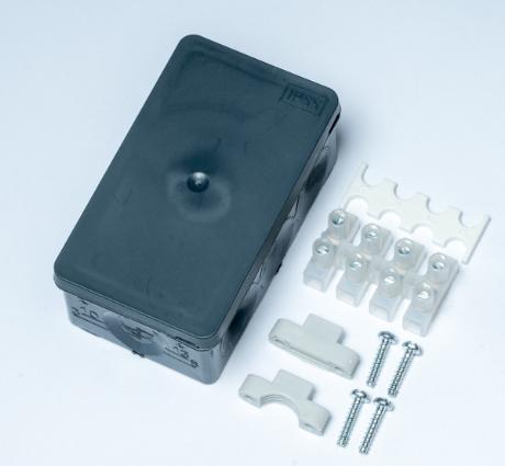 Med 10 indstøbte membraner, heraf 2 med aflastning og 2 i bunden af dåsennPasser til alle typer kabler fra 3mm til 13mmnMedleveret tilbehørn1 stk vendbar aflastning fra Ø3 til 11mmn1 stk vendbar aflastning fra Ø3 til 7mm, samt Ø11,5 til 13,5mmn1 stk 4 polet klemrække 2,5mm2, 16A, 400Vn1 stk vendbar markering til klemrækken4 stk skruer med lige/krydskærvn1 stk gummiprop klasse IInHxBxL: 35x49x82mm