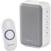 Trådløs dørklokke til stikkontakt med trykknap (batteri i trykknap)nHvidnRækkevidde 150 meter (868 MHz) (signal målt i frie omgivelser)nMaksimal volumen på 80 dB, som kan høres på en afstand på op til 60 metern4 forskellige ringemelodiernMax. 2 trådløse trykknapper/sensorer/dør-vindue sensor kan tilkoblesn110x70x42,5mm hxbxd (dørklokke)n30x70x16mm hxbxd (trykknap)nIndikator for lavt batteri, på både trykknap og dørklokkennPakken indeholder:nTrådløs bærbar ringeklokkenTrådløs trykknapnCR2032 3V batteri til trykknap