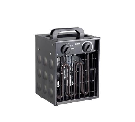 Industri varmeblæser i solid metalkonstruktion, med justerbar termostatn2000W effektn3 indstillinger for ventilationn230V strømudtagnVægt 2,8 kgnMål: 28×19,5×18 cm (HxBxD)